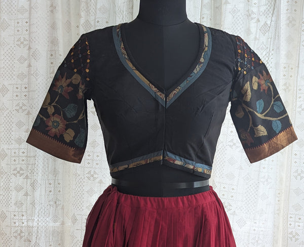 Inkstone Black Appliqué Kutch Embroidered Blouse