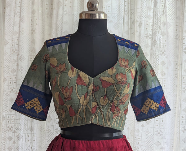 Mrunalini Kalamkari with Kutch Embroidered Blouse